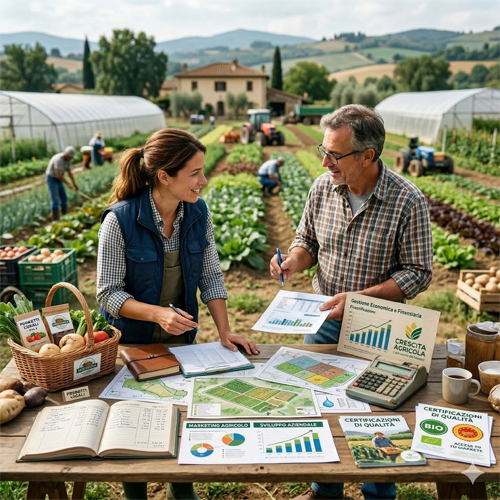 Consulenza su gestione economica e finanziaria, marketing agricolo, certificazioni di qualità, diversificazione delle attività e accesso ai mercati.